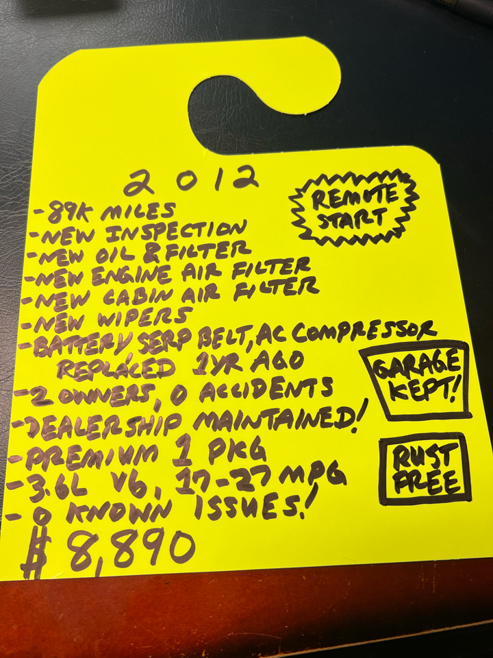 89,532 miles, FWD, 6 Cyl 3.6L V6 DOHC 24V FFV